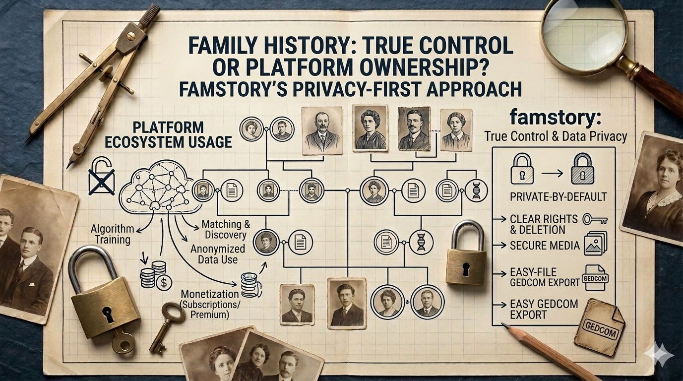 For a detailed comparison of privacy-first platforms, see Is Your Family Tree Public?.